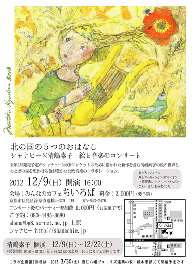 | 4月 | 3rdCD"Ljus"発売記念コンサート「北の国の5つのおはなし」 シャナヒー×清嶋素子絵と音楽のコンサート ゲスト:ほりおみわさん 藤木信希さん |