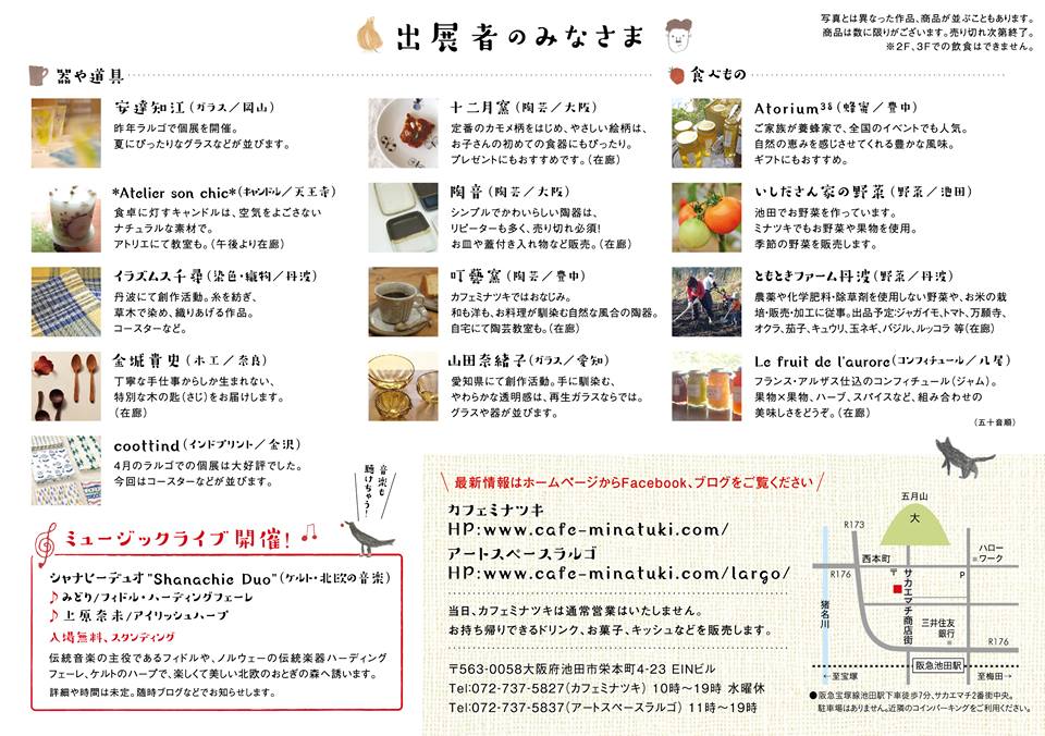 | 7月 | 食と食卓の市@Lalgo+room 会場:大阪府池田市 Lalgo+room ちらし表 裏 |