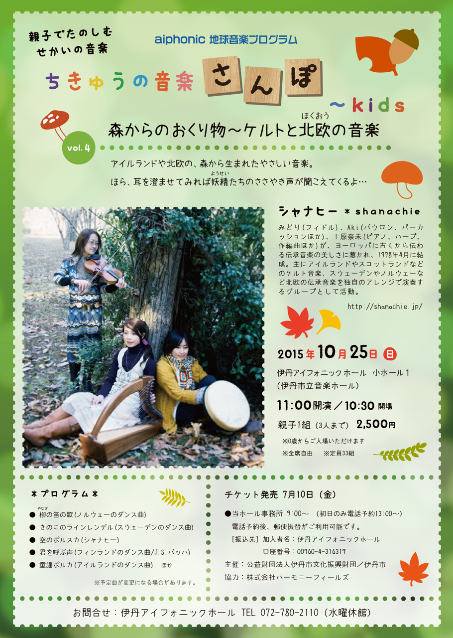 | ちきゅうの音楽さんぽ@アイフォニックホール 会場:兵庫県伊丹市 アイフォニックホール ちらし |