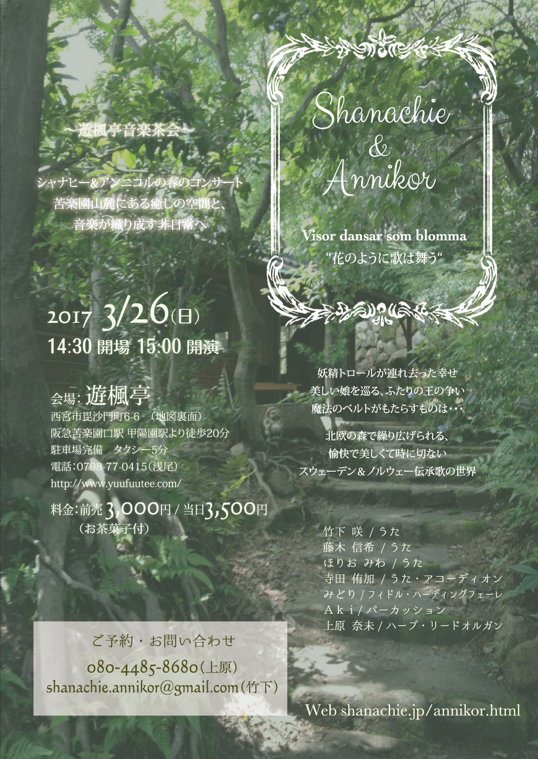| 3月 | Shanachie&Annikor Visor dansar som blomma "花のように歌は舞う" 会場:遊楓亭 ちらし |