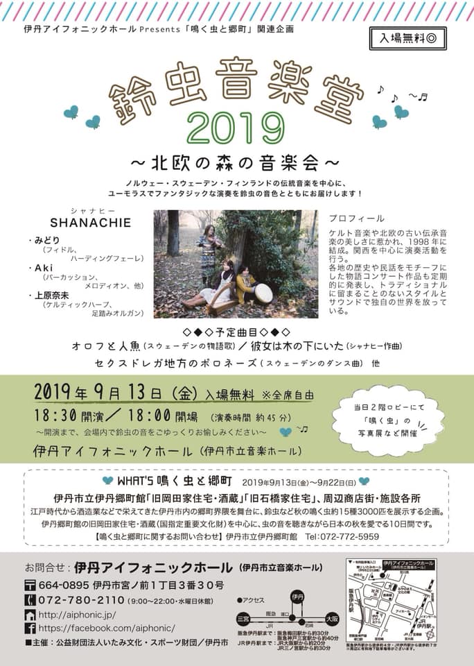 | Shanachie&Annikor 箕面のまちやまコンサート秋会場 : 箕面公園昆虫館前 |