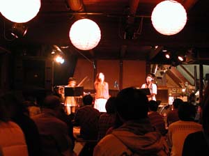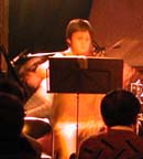 | そして後半はシャナヒー。 前半のButter dogsを聴いているうちに、いつになく緊張しつつ(私だけ?)バタフライ。 最初のMCで少し緊張していたら、会場から「シャナヒー好き!」(だったかな?)と大きなかけ声。 で、一気に緊張感がほぐれました。どうもありがとう! ![]() お店の方に無理言って撮影を頼んだのですが、写していただいた位置からは、aki、miwako、namiが写らず・・・でも後ろにちゃんとおりますので(^^;) さて、会場で発表しましたように、今回からフィドルのmidoriが新たにシャナヒーのメンバーとして加わりました!!わ〜い(^0^)/ ![]() 長い間フィドル無しでやっていた分、メンバーの嬉しさもひとしお。これから、どうぞよろしく♪ 彼女は本当に音楽への愛を感じるフィドラーで、その演奏にはファンも多く、私も後ろで弾いていてとても楽しい気持ちになれました。今後シャナヒーの音がどんな風に進化するか、楽しみです。 実は、Butter dogsのはたおさん、トシさんとmidoriは、かつてアイリッシュバンド・クラックで共に活動していた仲なのでジョイント曲の練習でもさすがに息ピッタリ。そのためか、2度の合同練習は非常に楽しいひとときとなりました。 |