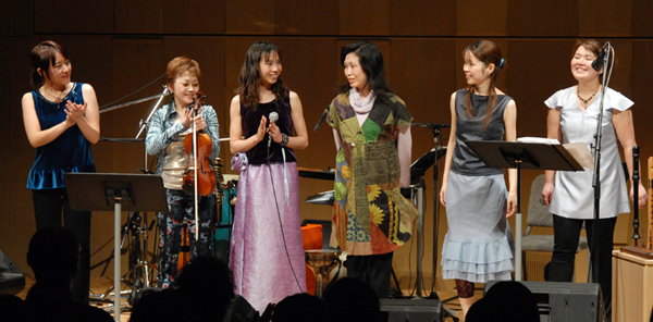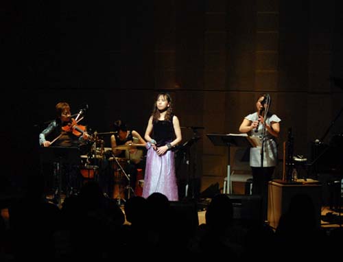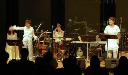 ![]() フェニックスホールは、ガラス張りの背景の向うに大阪の街灯りが透けて見える幻想的な舞台です。 演奏者の背中が映っているのが不思議な感じですね。。 ![]() 雰囲気のある舞台なので今回は凝った照明はなし。 難しいPAはNMGさんにお願いしました。 お客様が耳を澄まして聞いてくださってるのが伝わり、緊張感も心地よく感じられます。 1部の選曲は定番モノに加え、このホールの持ち味を活かせる様にと新曲をいくつか加えました。 カロデンはリアレンジして。 King of the fairies 妖精の王様 帰ってきたジョニー Silent, Oh Moyle 静かに、モイル PJ Bonnie Charlie ボニー・チャーリー Culloden's Harvest カロデンの実り 雨の中で 月の庭 〜Sally Garden〜 Tommy's Tarbukas Reel Set 帰ってきたジョニー 映像 PJ映像 upしました!(4/11) ![]() ダンスチューンの後はだんだんいつものノリになってきました(笑) ![]() メンバー紹介・曲紹介などを交えて。 いつになく凝ったプログラムを作り、曲解説もしっかり載せる事ができたのでMCは楽々でした。 プログラム製作ありがとう、Odaちゃん! ![]() ![]() ![]() akiとnamiでシンセを交互に担当。 akiちゃんもシンセは今やお手のもの。 ![]() vokal・Norikoは1曲目から最後まで堂々と歌いきりました。 後ろから見ていてとっても頼もしく感じました。 さて、二部は朗読家・近藤明子さんを迎えての朗読コンサートです。 物語は小川未明の「赤い蝋燭と人魚」 2005年にメイシアターで初演したときからさらに検討して曲や言葉を変えての今舞台。 朗読家が加わったことで演奏にも自由さが加わり、また前回難しかった音響面は前日リハを設けたことで余裕を持って出来たと思います。 朗読と音楽とのバランスはやはり難しいところでしたが、いかがだったでしょうか。 ![]() ![]() 近藤さんとNorikoが交互に登場します。 ―第2部― 小川未明 作 「赤い蝋燭と人魚」による 語りと音楽のコンサート (文:近藤明子 構成・音楽 上原奈未) T. An mhaighdean mhara 人魚 (Ireland Traditional ) U. Agnete og havmannen 人魚 (Norway Traditional) V. Mermaid 人魚(Scotland Dance Tune ) Se,solens skjonne lys og prakt (Norway Traditional ) W. Sjojungfrun och konungadottern 人魚と王女 (Sweden Traditional) Sea longing 懐かしい海 (Scotland Traditional) X. Vanner og Frander 親戚と友人 (Sweden Traditional) Y. 海 (オリジナル) 第1幕映像 upしました!(4/9) ![]() 近藤さんの朗読は言葉の表情も起伏に富んでイメージが膨らみます。 練習のとき、古本屋で明治時代の未明の初版本の復刻版を見つけたと持ってこられ、 この本の様な時代色を感じさせる朗読にしたいと語っておられました。 練習時には毎回手作りのケーキやお菓子やジャムが。。。 本番の日にも手作りクッキーの差し入れを持ってきてくださるなど、本当に器用で素敵な方でした。 そんな心の豊かさに憧れます・・・ ![]() ![]() ![]() |
