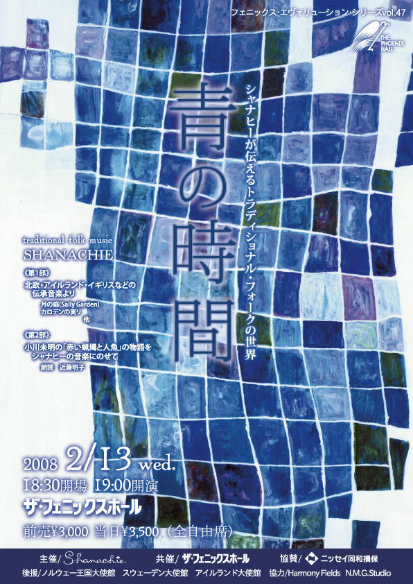 | 2008.2.13. フェニックス・エヴォリューションシリーズvol47 青の時間〜シャナヒーが伝えるトラディショナルフォークの世界〜 |